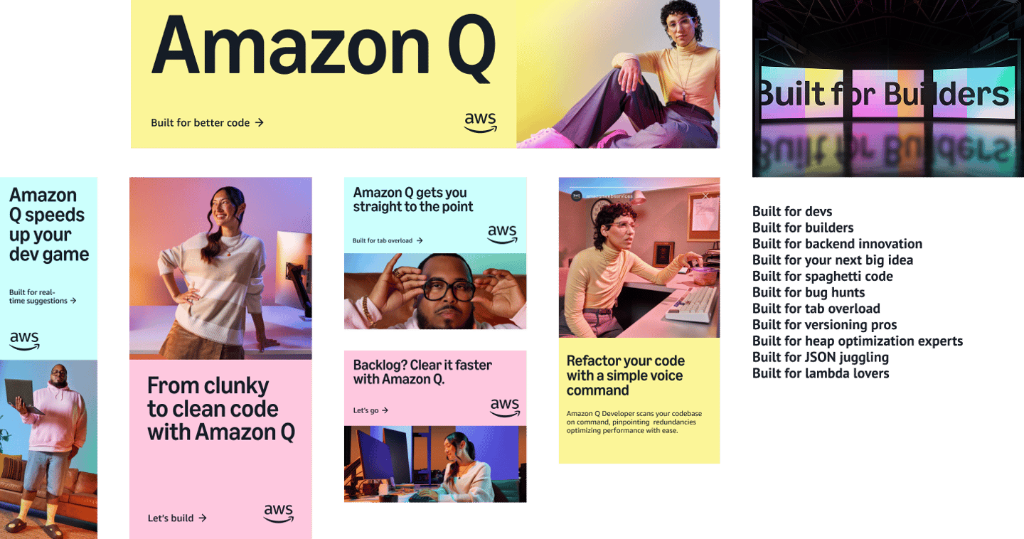 In the early days of the gen AI phenomenon, we were tasked with a sprint to develop and deliver an Amazon Q campaign that would speak to builders who wanted to make real things, not just funny pictures of celebrities with three arms.