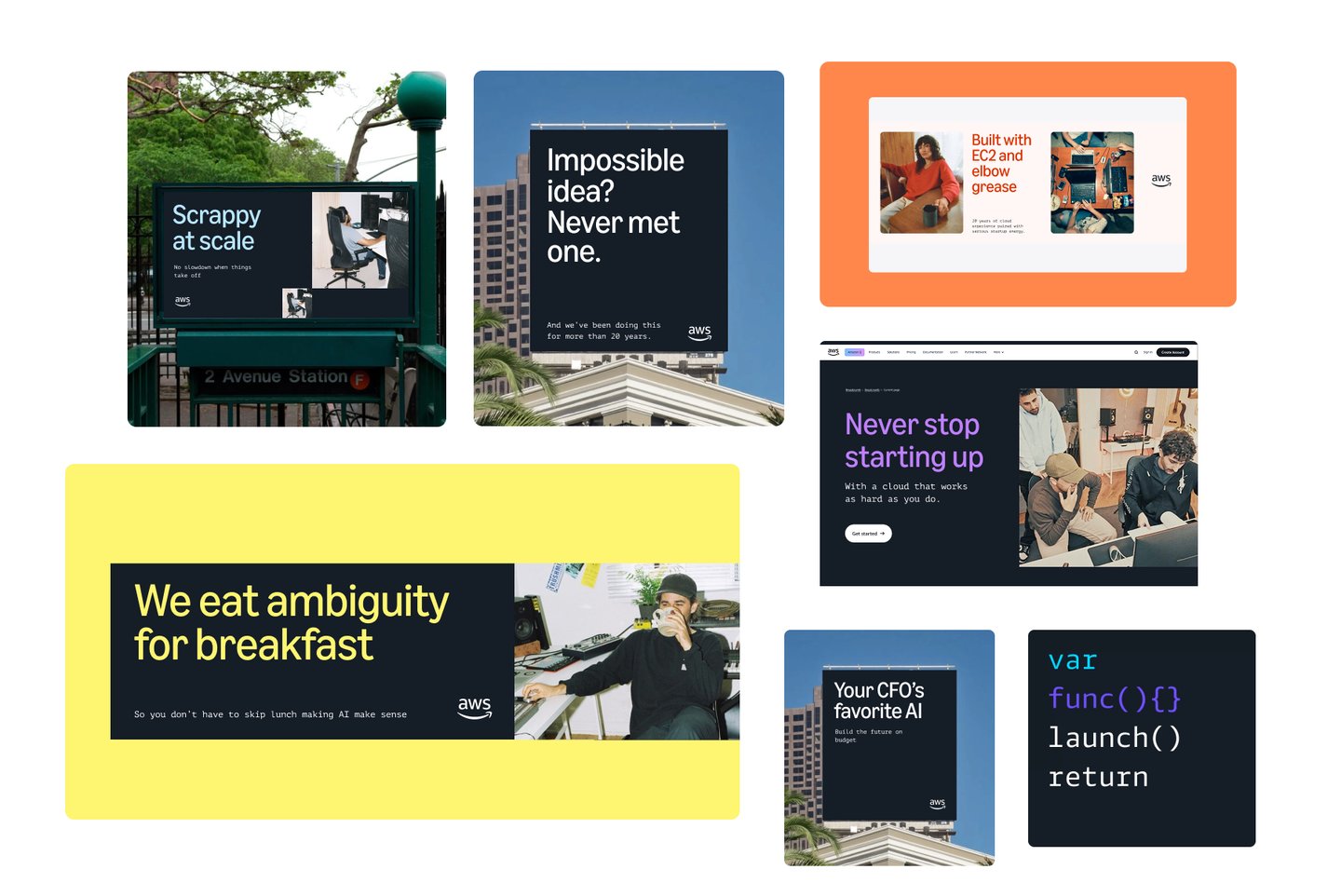 World's Biggest Startup: Despite the fact that AWS is a huge company with 20+ years of experience, it also operates with the curiosity, grit, and scrappy vigor of a startup. The result of this seeming contradiction? The tech, security, and agility customers need to go further than they thought possible (along with a front-row seat to the future).